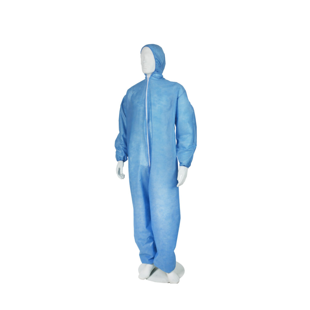 Elaborado en tela azul o blanca SMS 35 Gr. Con cremallera y capot y resorte en puños y tobillos. Tallas: S, M, L, XL. Empaque: Paquete por 5 unidades.