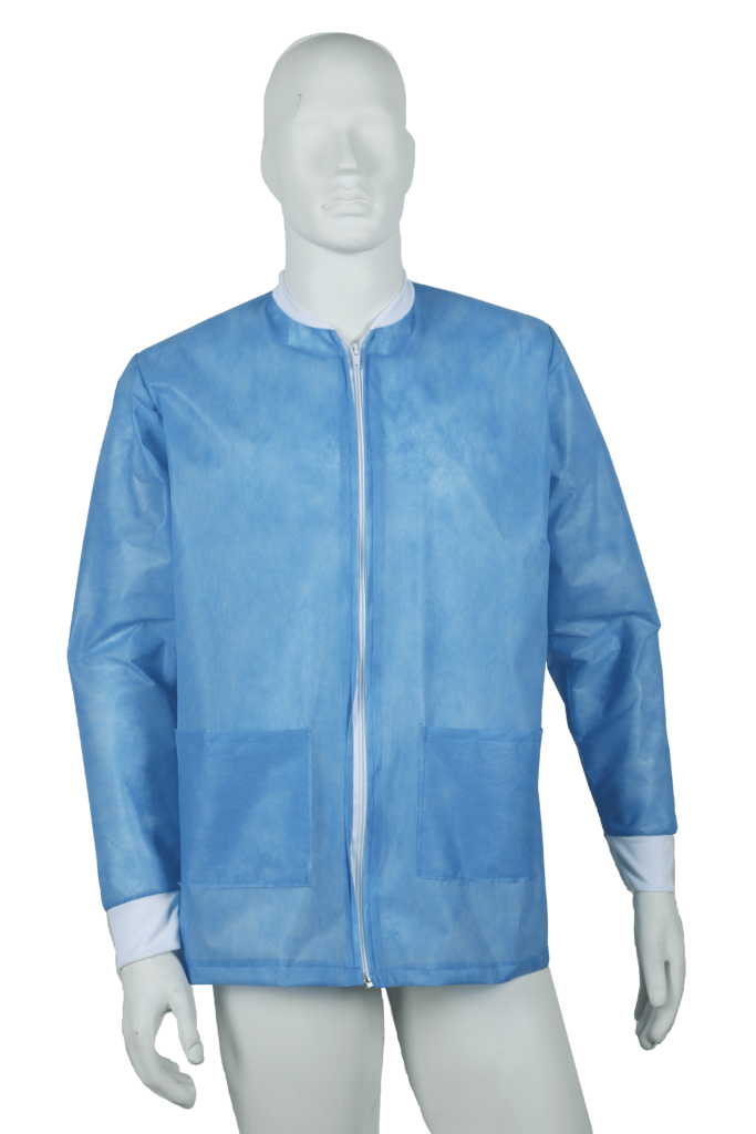 Elaborada en tela azul o blanca tela SMS 35 gramos Colores surtidos en tela SS de 60 gramos Con cremallera o según requerimiento del cliente Cuello y puños en algodón Dos bolsillos delanteros Tallas S, M, L, XL Empaque: Paquete por 10 unidades