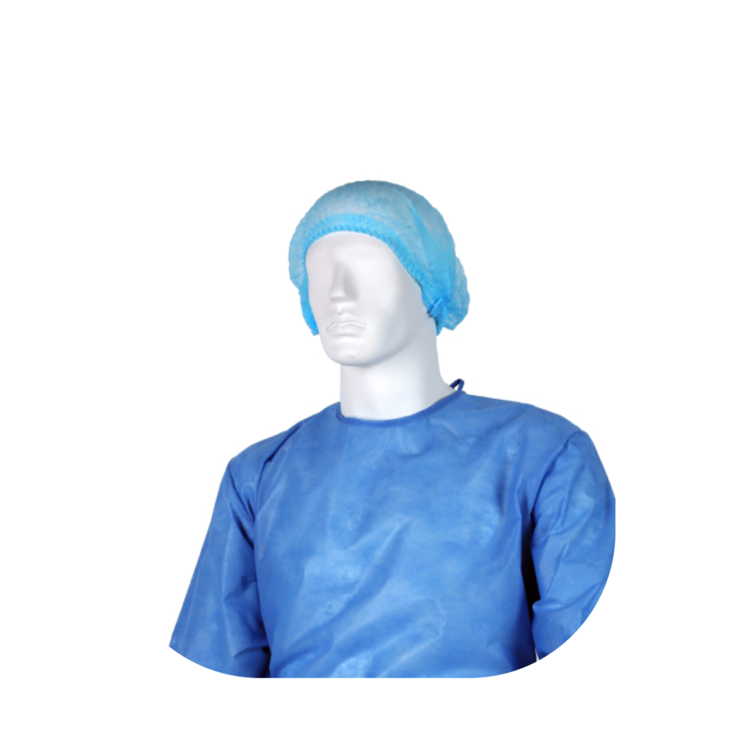 Elaborado en tela SMS 35 g Sujeción cuello y cintura con 2 tiras de amarre Paño resortado en algodón Talla: Única Presentación: Estéril y no estéril Empaque: Paquete por 10 unidades.