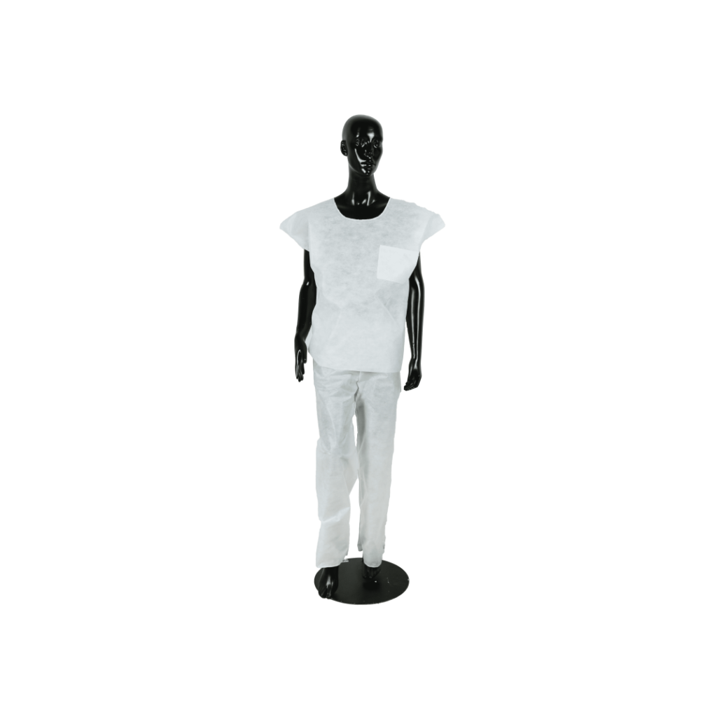 Elaborada en tela SMS 35 g En dos piezas (blusas y pantalón) Manga corta o larga Pantalón resortado en la cintura. Talla: S/M/L/XL Presentación: Estéril y no estéril Empaque: Paquete por 5 unidades.