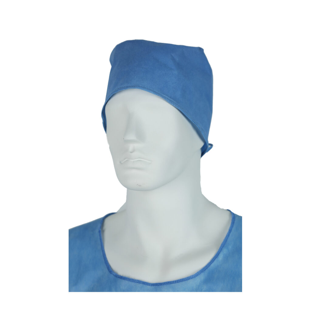Elaborada en tela azul SMS 35 g Textura suave Tirilla de amarre en la parte posterior Empaque: Paquete por 50 Unidades